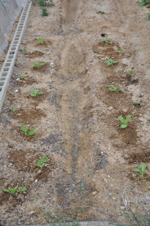 畝作りに留めてずっと空けて待っていた場所に、いよいよ白菜を植えつけることに