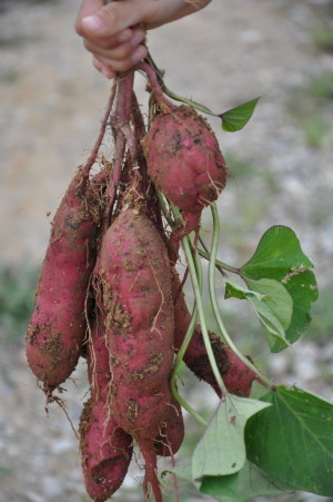 そしてサツマイモの甘い?誘惑に負けてとうとう1株だけ抜いてみることにしました。